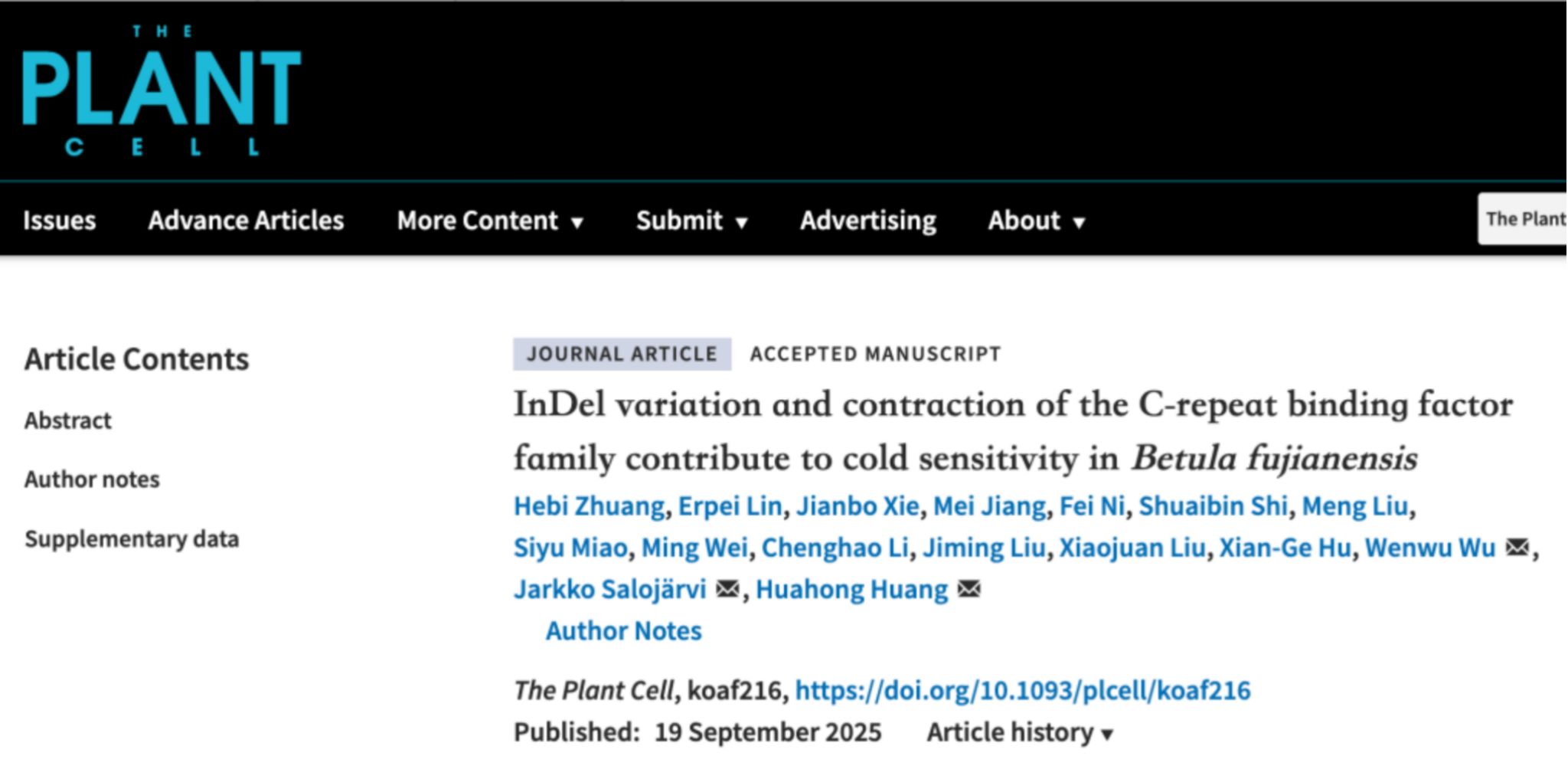 近日,林生院黃華宏教授課題組在國際知名植物學期刊《The Plant Cell》(中科院1區(qū),IF=11.6)上發(fā)表了題為“InDel variation...